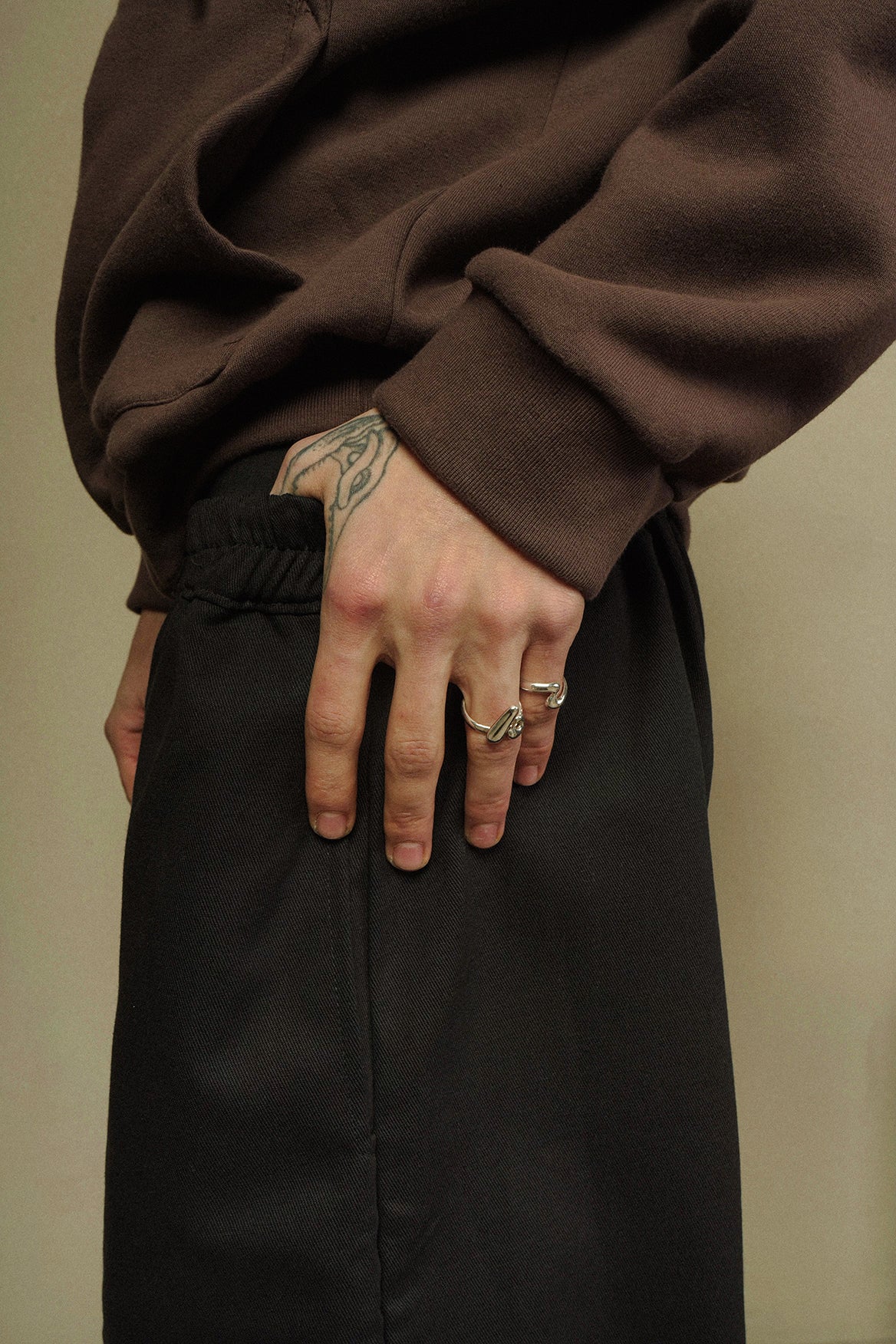 - Cintura con elástico, botón y cordones
